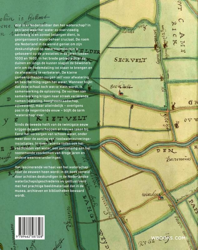 Wat is er Nederlandser dan het waterschap? In een land waar zo veel water is en waar zo veel belangen spelen, is georganiseerd waterbeheer cruciaal. De roem die Nederland in de wereld geniet om zijn deskundigheid op waterstaatsterrein is gebaseerd op de prestaties in de jaren tussen 1000 en 1600. In het brede gebied achter de duinen en langs de kusten slagen de bewoners er in om de bodemdaling tot staan te brengen en de afwatering te verbeteren. De kleine gemeenschappen zorgen zelf voor afwatering en bescherming tegen het water. Wanneer blijkt dat deze schaal toch wat te klein wordt, is samenwerking de oplossing. De vormen van samenwerking krijgen per streek variërende namen (watering, hoogheemraadschap, zijl vestenij), maar uiteindelijk – overigens pas in de negentiende eeuw – blijft de term ‘waterschap’ over.
